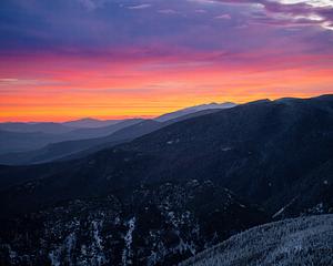 Sunrise from Mount Cannon of the layers of the White Mountains