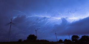 Lightning Strike above a wind farm in Oklahoma